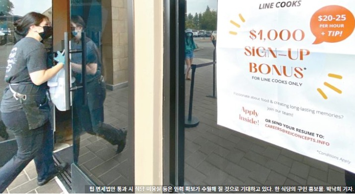 익명을 요구한 한 한인 업주는 “같은 4만 달러를 벌어도 식당 직원은 세금을 덜 내고, 내 직원은 그대로 세금을 낸다면 당연히 불만이 생길 수밖에 없다. 앞으로 팁을 받는 업종으로 근로자가 몰리면 구인이 더 힘들어질 것 같다”고 말했다.