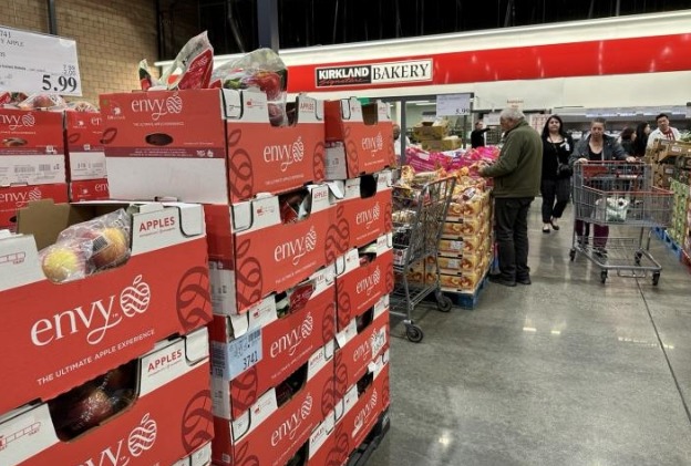 지난 3일(현지시간) 미국 로스앤젤레스(LA)의 한 코스트코 매장에서 소비자들이 과일 등 식료품을 살펴보고 있다. 연합뉴스
