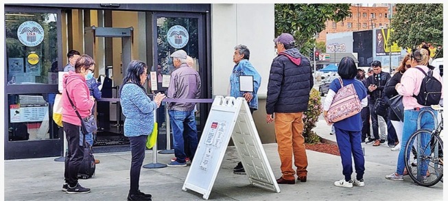 LA 한인타운 연방 사회보장국 오피스 앞에 민원인들이 줄을 선 모습. [박상혁 기자]