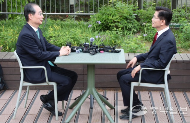 김문수 국민의힘 대선 후보와 한덕수 무소속 예비후보가 8일 오후 서울시 여의도 국회 사랑재 커피숍에서 단일화 관련 1:1 공개 회동을 갖고 있다. 임채운기자