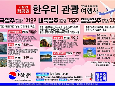 한국및 전 세계 항공(관광)특가 한우리여행사(213-388-4141)