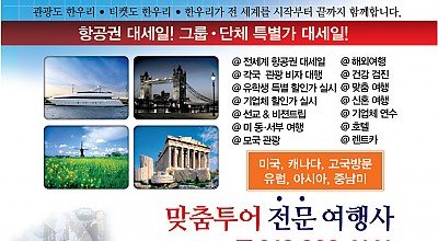 한국및 전 세계 항공(관광)특가 한우리여행사(213-388-4141)