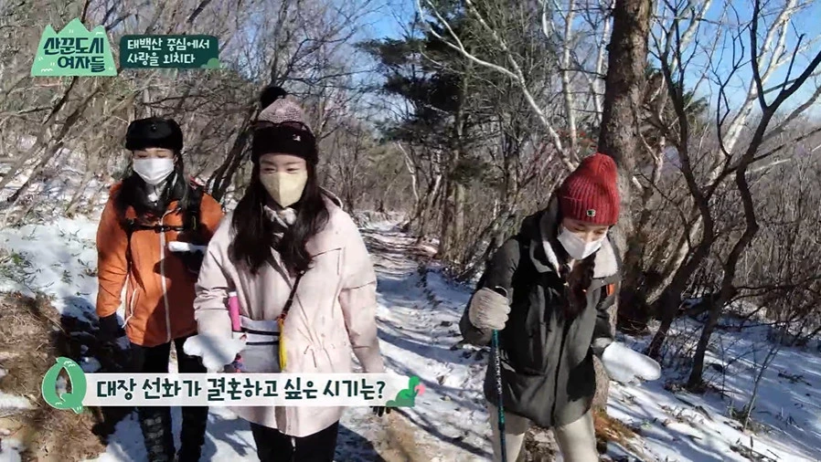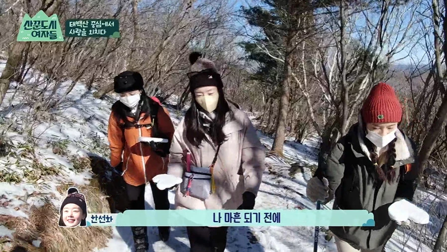 지난 11일 첫 방송된 tvN '산꾼도시여자들'에서는 지난해 드라마 '술꾼도시여자들'로 사랑받은 한선화, 정은지, 이선빈이 태백산에 오르는 여정이 전해졌다. 세 사람은 드라마 이후 '찐친'으로 발전했다고 알려져 있다.