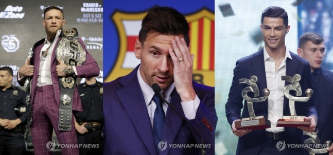 축구 스타 리오넬 메시와 크리스티아노 호날두가 맥그리거에 이어 2, 3위를 차지했다. 메시는 9천 2백만 파운드( 한화 약 1천4백90억원), 크리스티아노 호날도는 8천5백만 파운드(한화 약 1천3백 77억원)였다.