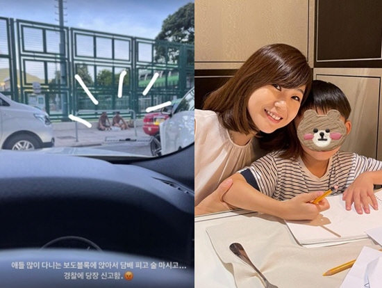 24일 강수정은 인스타그램에 "애들 많이 다니는 보도블록에 앉아서 담배 피우고 술 마시고...경찰에 당장 신고함"이라는 글과 함께 사진을 올렸다.