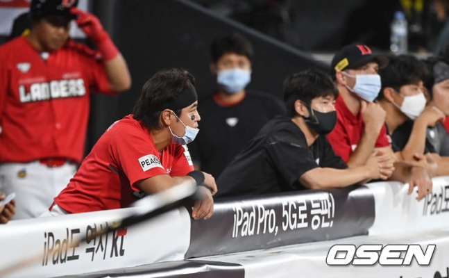 [OSEN=수원,박준형 기자]9회초 패색이 짙어지자 SSG 추신수가 아쉬운 듯 경기를 지켜보고 있다. 2021.08.25 / soul1014@osen.co.kr