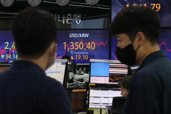 이날 환율은 11.2원 오른 1342.5원에 거래를 시작해 오후 12시 32분 1350.8원까지 올랐다. 환율이 1350원을 돌파한 것은 2009년 4월 29일(고가 기준 1357.5원) 이후 약 13년 4개월 만이다.