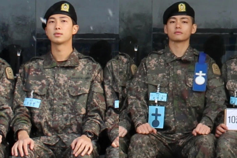 방탄소년단 뷔·알엠, 훈련소 사진 공개… 빛나는 군복 자태 / 사진= 육군훈련소, 위버스 화면 캡처 © 제공: TV리포트 한아름 기자