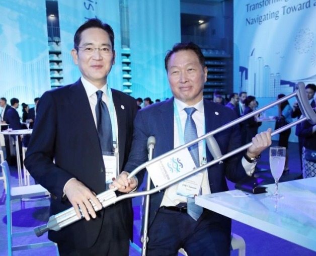 목발 의지해 나타난 최태원 "한국이 압도했다"