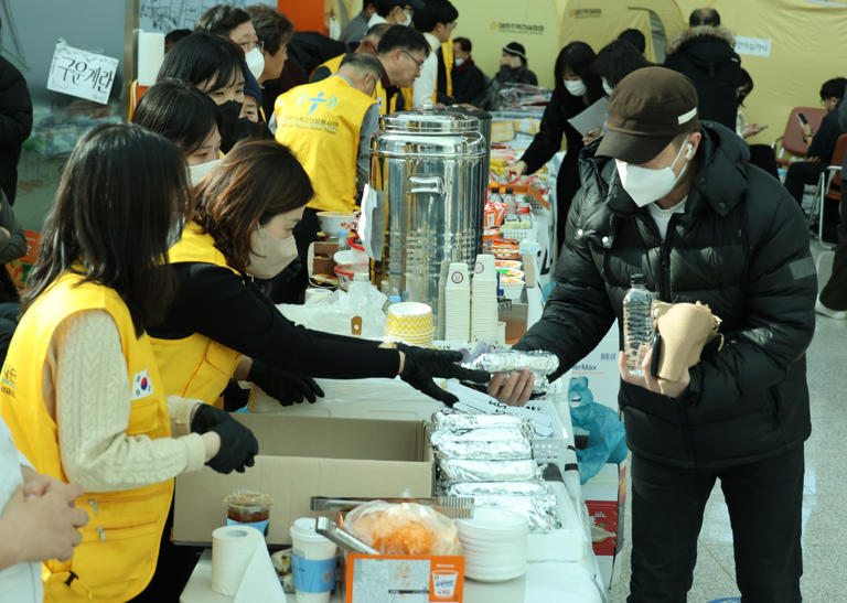 봉사자들은 100m가량 떨어진 공항 별관동 앞 야외에 마련된 배식대에서 유족들을 대신해 밥과 국을 그릇에 퍼담은 뒤 줄을 지어 유족들이 머무는 본청사로 향했다.