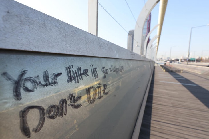 지난 2월 서울 마포대교 난간에 자살 예방을 위한 메시지가 적혀져 있다. 연합뉴스
