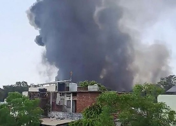 12일(현지시간) 인도 서부 아마다바드 공항 인근에서 242명을 태운 에어인디아 여객기가 추락해 사고 현장에서 검은 연기가 피어오르고 있다. ⓒ AFP/연합뉴스