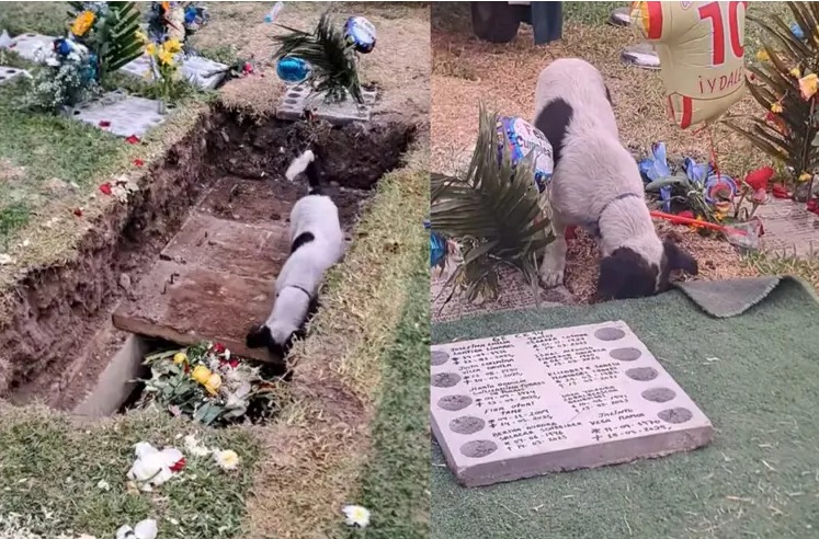 사망한 주인의 무덤에 들어가 마지막 인사를 전하는 한 반려견의 모습이 공개돼 감동을 주고 있다.