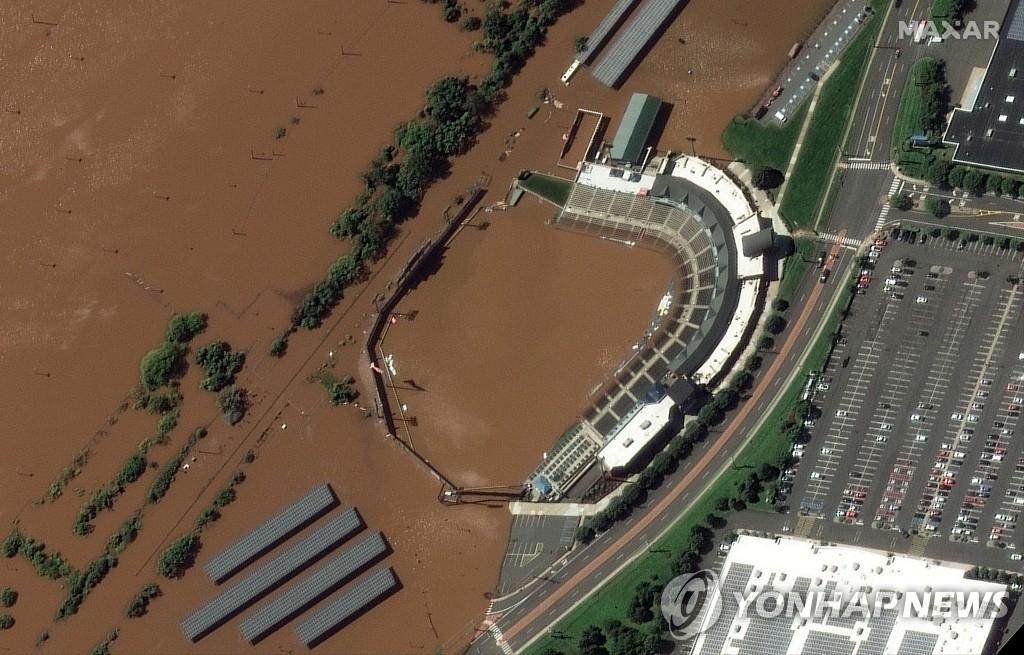 허리케인 '아이다'로 침수된 미 뉴저지주 야구장 DMVmoa 0 921 2021.09.03 21:58 허리케인 '아이다'로 인한 홍수 피해지역인 뉴저지주 브리지워터의 야구장 일부분이 인근 강 범람으로 침수된 2일 모습. 지난달 남부 루이지애나주에 큰 피해를 발생시킨 아이다는 뉴욕과 뉴저지 등 북동부 일대를 강타했다. 지금까지 아이다로 인한 사망자는 최소 32명으로 집계됐다. [맥사 테크놀로지스 제공.