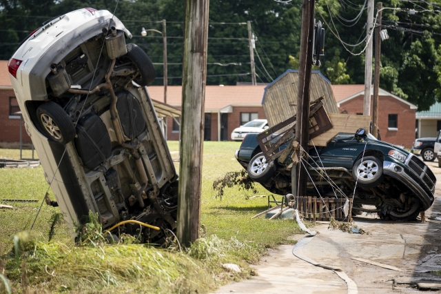 미국 테네시주 중부를 강타한 홍수로 22일(현지시간) 웨이벌리 지역에 차량들이 여기저기 널브러져 있다. 지난 21일 테네시주엔 432㎜의 기록적인 폭우가 쏟아져 지금까지 최소 22명이 숨지고 수십 명이 실종됐다. AP뉴시스