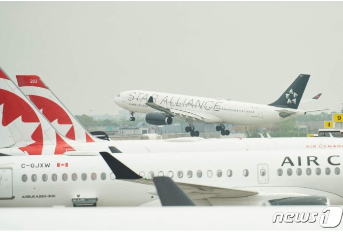에어캐나다의 여객기가 캐나다 퀘벡주 몬트리올에 있는 피에르 엘리오트 트뤼도 국제공항에서 이륙하고 있다. 2022.05.16 ⓒ AFP=뉴스1 ⓒ News1 정지윤 기자