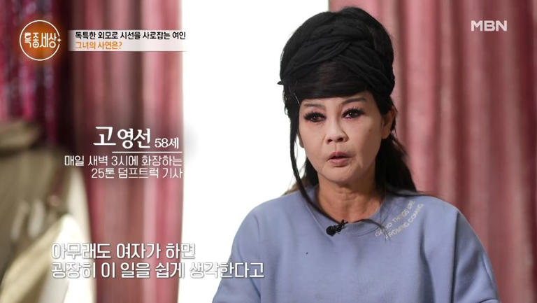 지난 6일 MBN ‘특종세상’에는 28년째 25톤 덤프트럭을 모는 기사 고영선(58)씨가 출연했다. 1년 365일 화장을 지우지 않는다는 그에게 가장 중요한 일과는 화장이다.