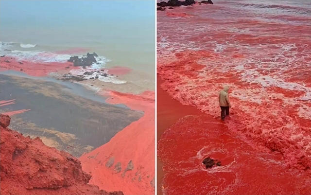 시뻘건 빗물이 바닷가 전체를 뒤덮은 모습은 마치 지구 속 작은 ‘화성’(火星)을 보는 듯하다.