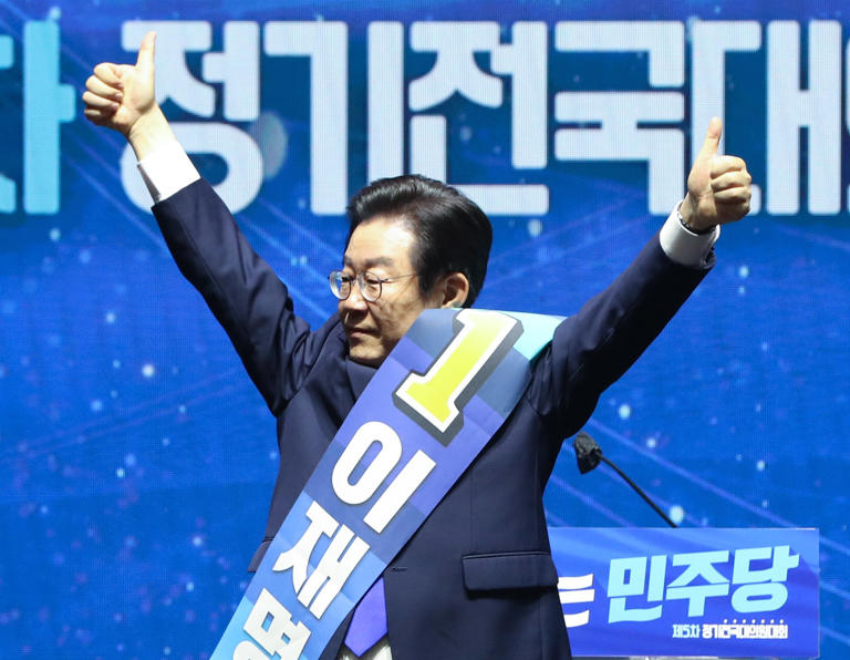 이 대표는 이날 서울 송파구 올림픽체조경기장에서 열린 전당대회에서 총 득표율 77.77%로 대표로 선출됐다. 최고위원으로는 정청래·고민정·박찬대·서영교·장경태 의원(득표 순)이 선출됐다.