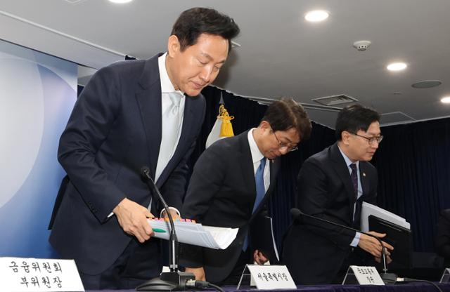 오세훈(왼쪽) 서울시장과 박상우(가운데) 국토교통부 장관이 19일 서울 종로구 정부서울청사에서
