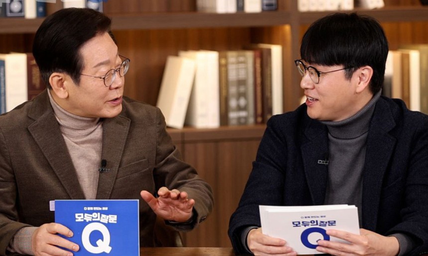 ‘모두의질문Q’ 출연한 이재명 더불어민주당 이재명 대표(왼쪽)가 2일 당내 정책과제 국민의견 수렴 플랫폼인 ‘모두의질문Q’ 대담에 출연해 참석자와 대화하고 있다. 민주당 제공