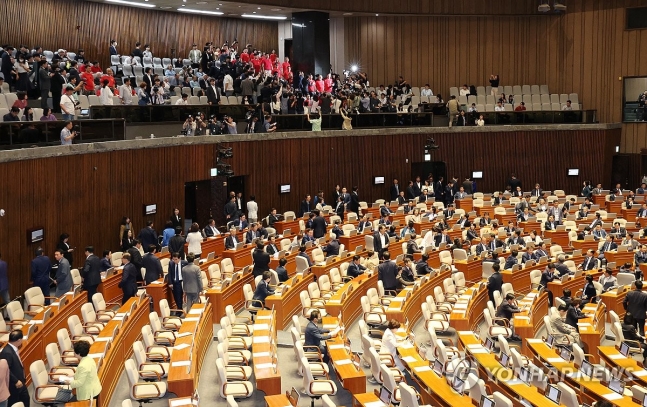 국민의힘 의원들은 특검법 부결 발표 즉시 모두 본회의장을 떠나 20분가량 비공개 의원총회를 한 뒤 해산했고, 민주당은 다수 의석을 앞세워 단독으로 쟁점 법안의 부의·상정·표결을 추진했기 때문이다.