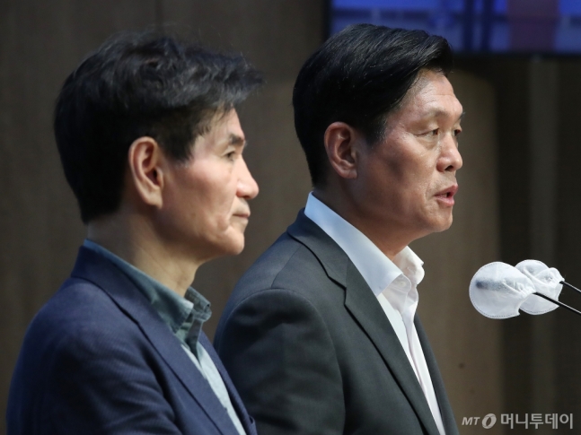 조승래 더불어민주당 소속 국회 과학기술정보방송통신위원회 간사(오른쪽)와 이용선 외교통일위원회 간사가 12일 오후