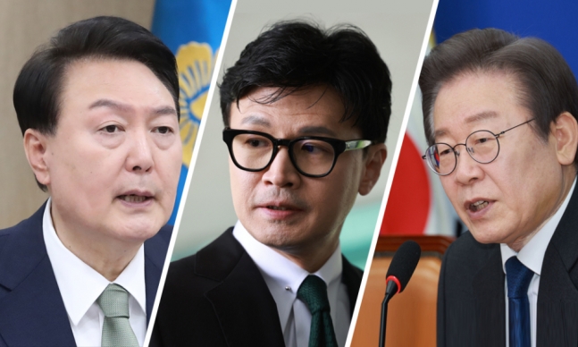 사진 왼쪽부터 윤석열 대통령, 한동훈 국민의힘 비상대책위원장, 이재명 더불어민주당 대표 ⓒ연합뉴스