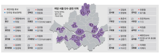 국민의힘 1차명단 발표 … 한강벨트 등 서울 19곳 확정