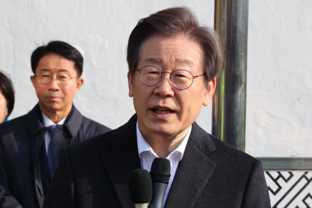 이재명 더불어민주당 대표가 10일 서울 종로구 서울대학교병원에서 퇴원하면서 입장을 밝히고 있다. [뉴시스]