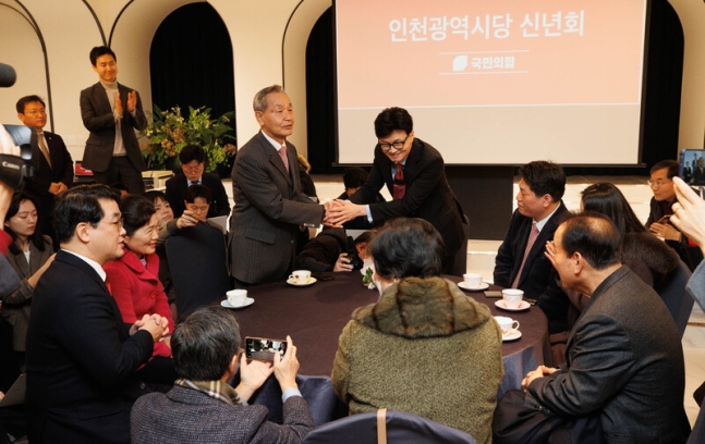 한동훈 국민의힘 비상대책위원장이 16일 오전 인천 계양구 카리스호텔에서 열린 2024 국민의힘 인천시당 신년인사회