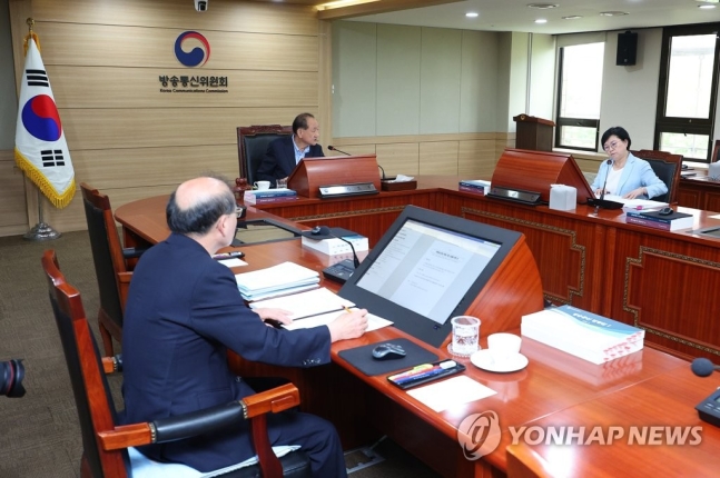 (과천=연합뉴스) 김도훈 기자 = 14일 오전 경기도 정부과천청사 방송통신위원회에서 열린 전체회의에서 김효재 위원장 직무대행이
