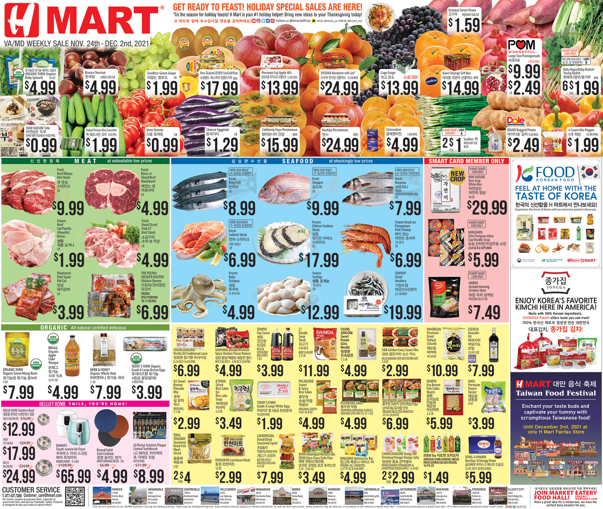버지니아/ 메릴랜드 H mart 주간세일 (11/24~12/2/2021)